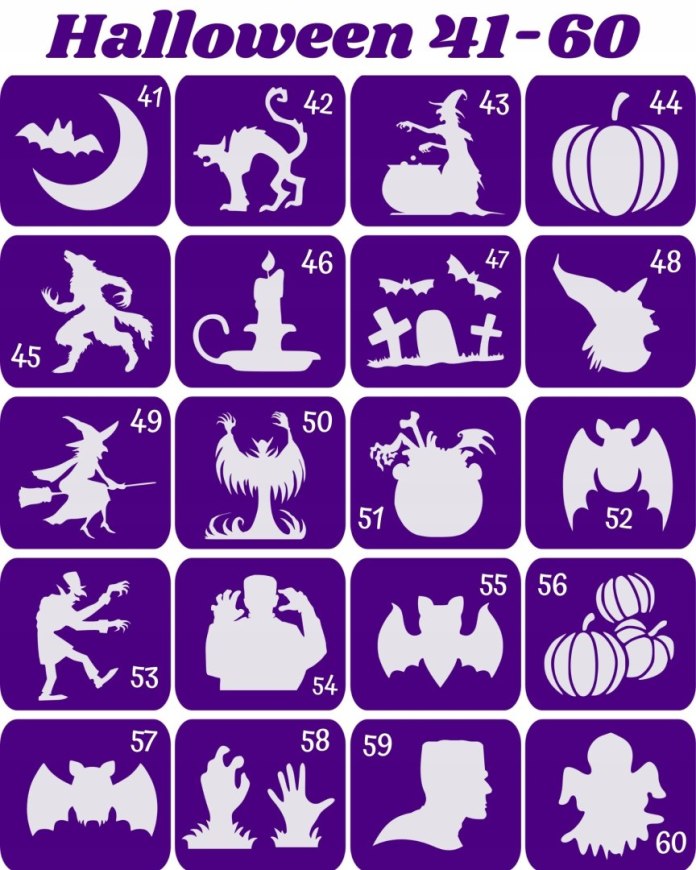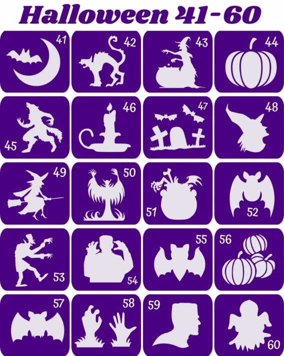 HALLOWEEN / ANDRZEJKI 41-60- szablony do tatuaży brokatowych