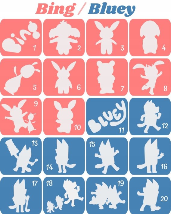 BING & BLUEY- szablony do tatuaży brokatowych