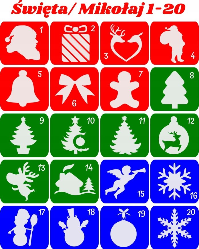 MIKOŁAJ / ŚWIĘTA 1-20- szablony do tatuaży brokatowych
